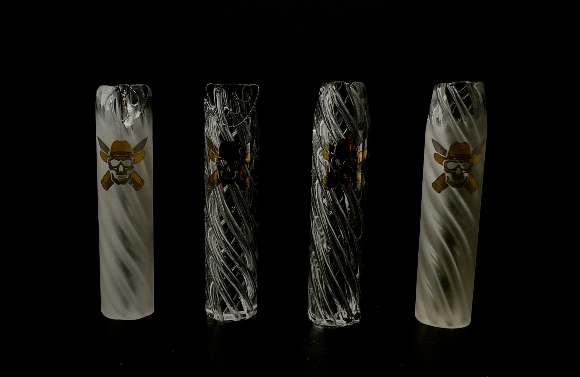 The first color way keeps it as simple and clean as possible with our Crystal and frosted Crystal series. Crystal is our Crystal clear like a diamond color way that is 100 % transparent showing our larger inner tubes twisting from start to finish to cool down your smoke . This year we are using a new 6 hole pattern that includes larger holes shaped more like teardrops than typical holes leading the way to larger tubes for dramatically more airflow than before . This allows you to pack your doinks as tight as possible all while still getting larger hits from jump, this tighter pack also allows your ash to become even whiter in comparison to a slightly looser pack. We are also debuting all of these new variations and sizes :